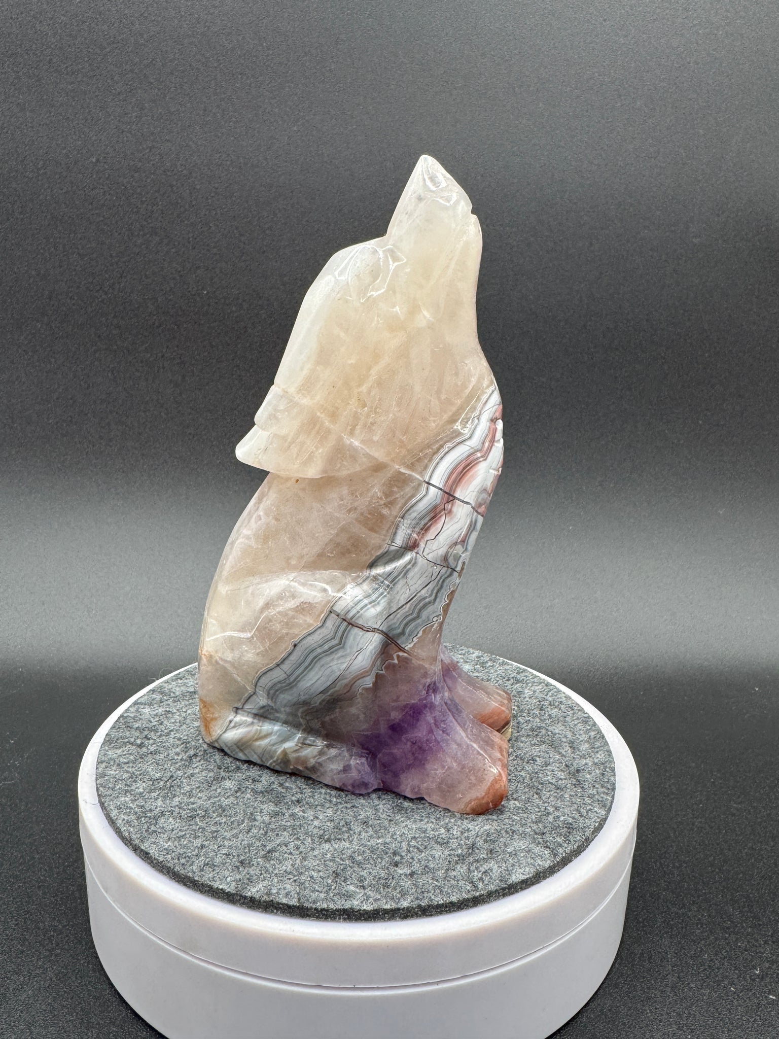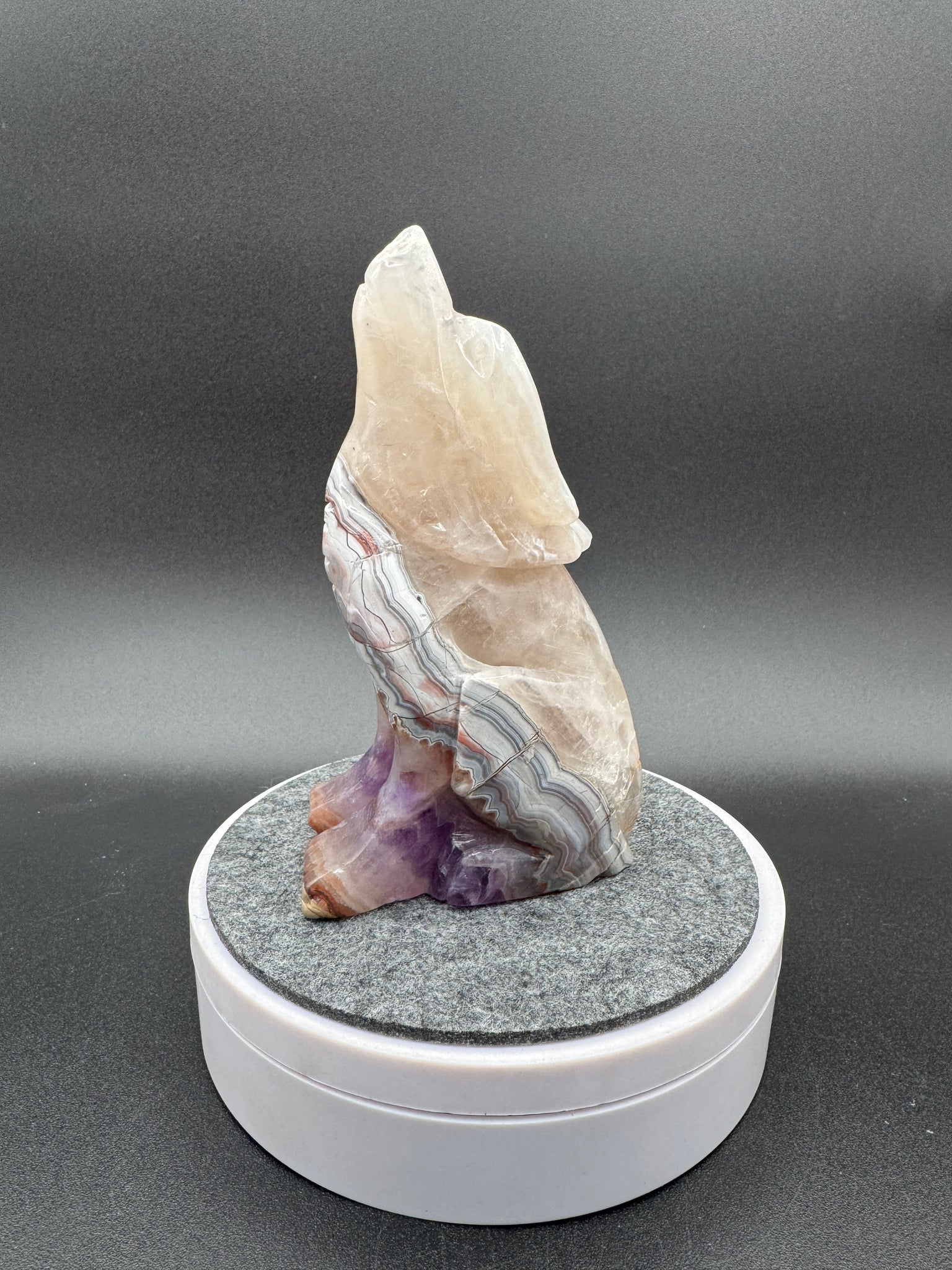 1.1 lb Amethyst Lace Agate Wolf Carving SZ67 Intuition • Guardianship • Inner Strength