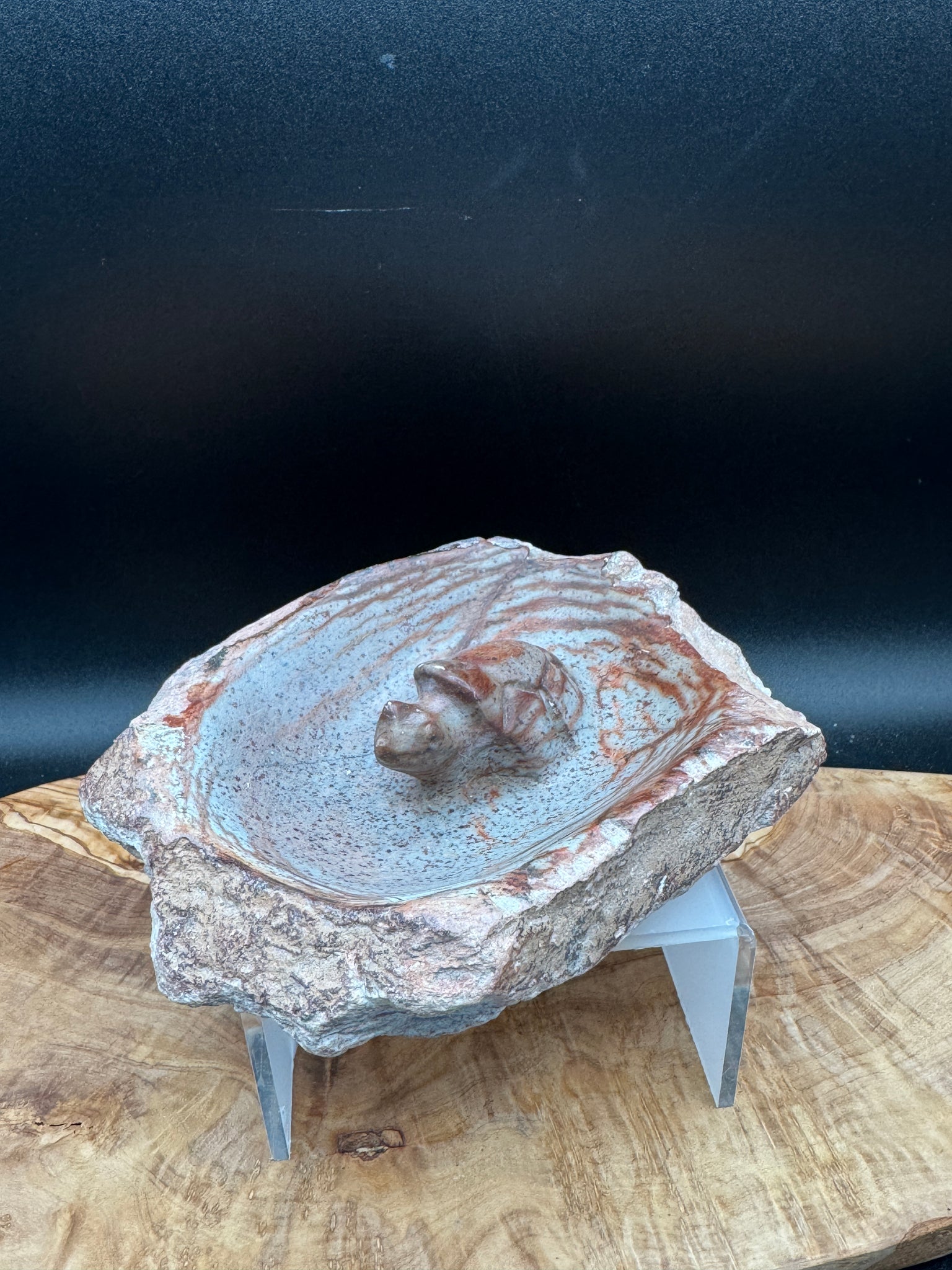 Brown Serpentine Turtle Bowl | Hand-Carved Zimbabwe Stone | Crystal Charging Dish | Altar Tool | One-of-a-Kind