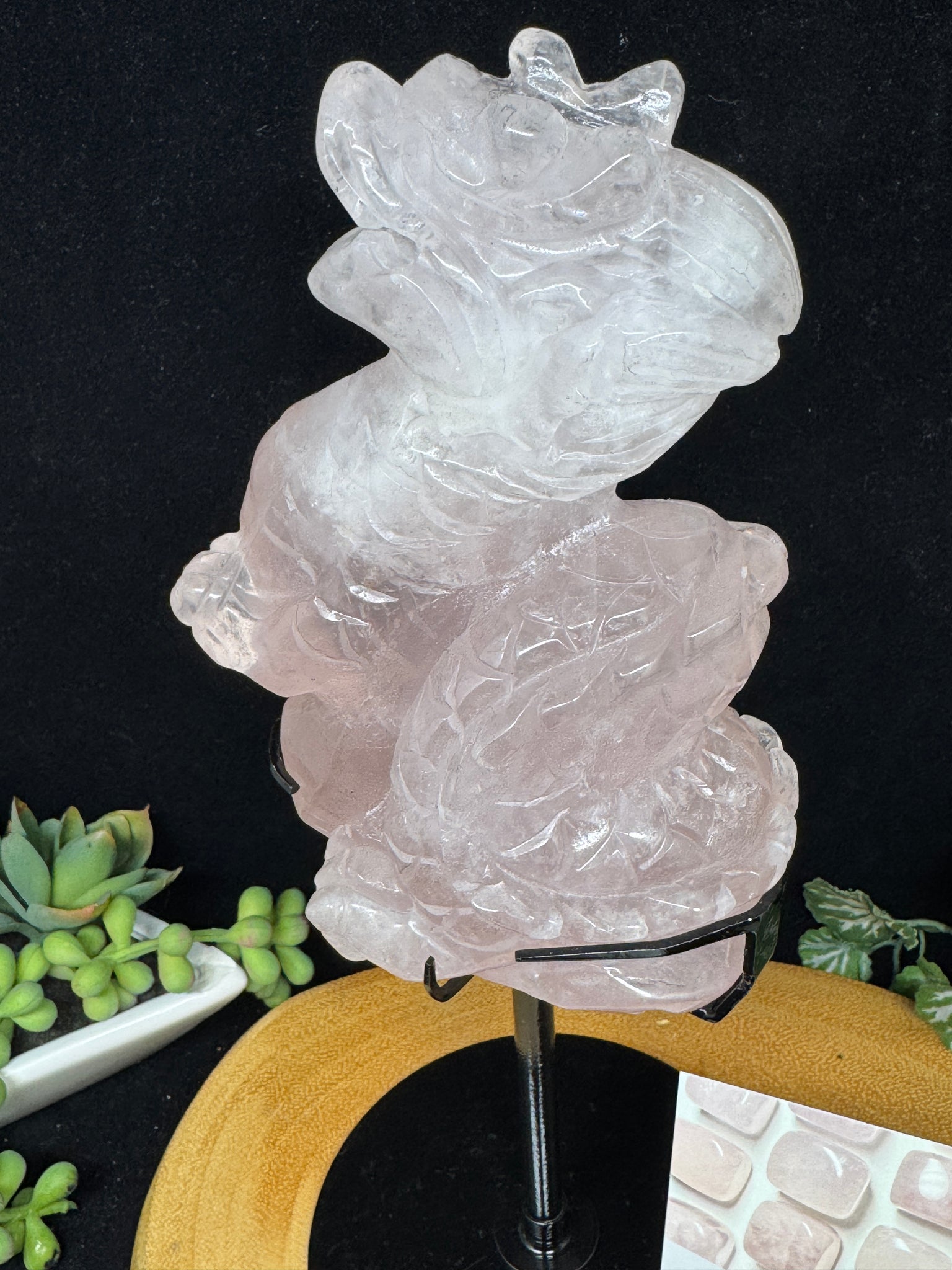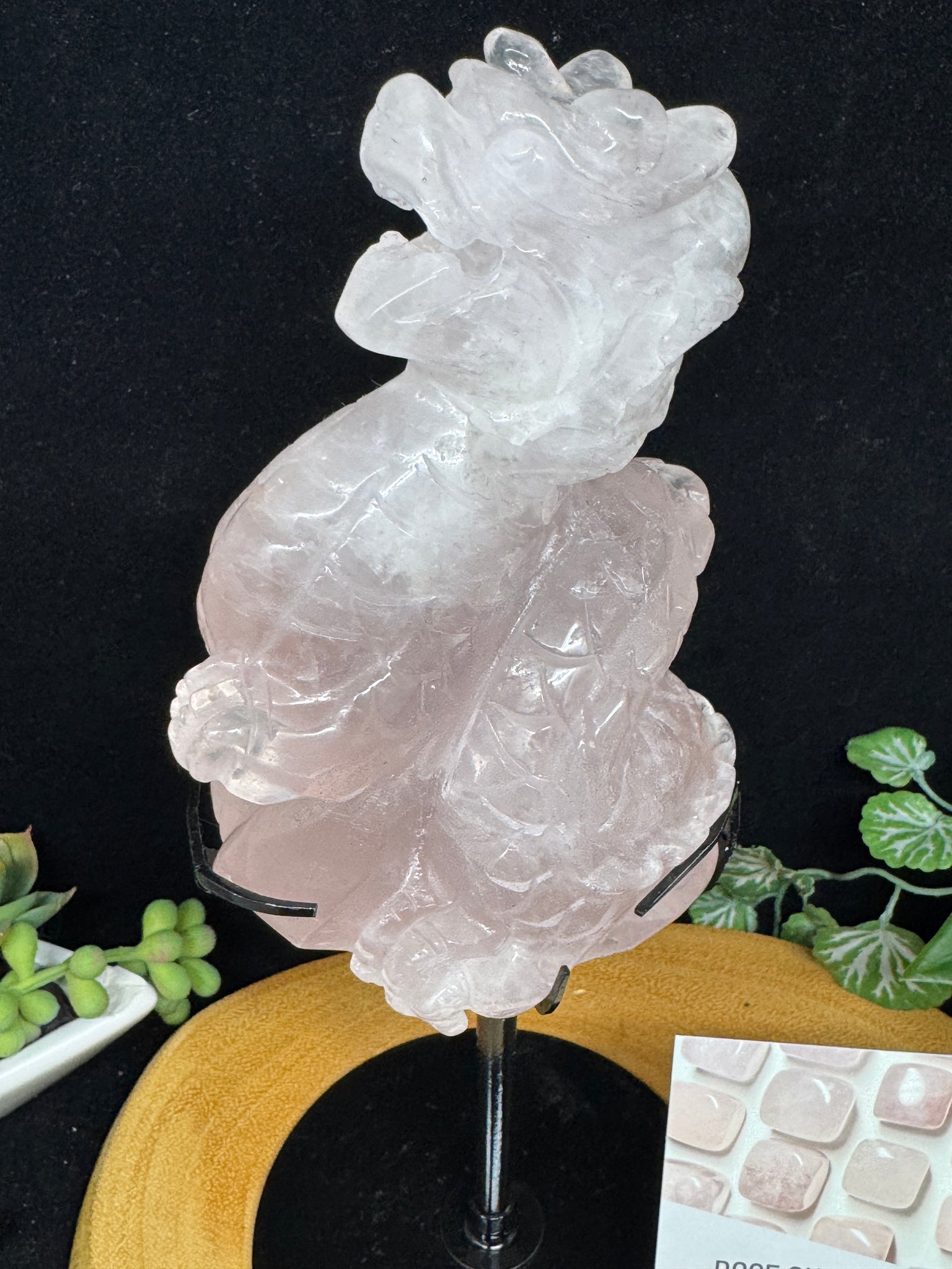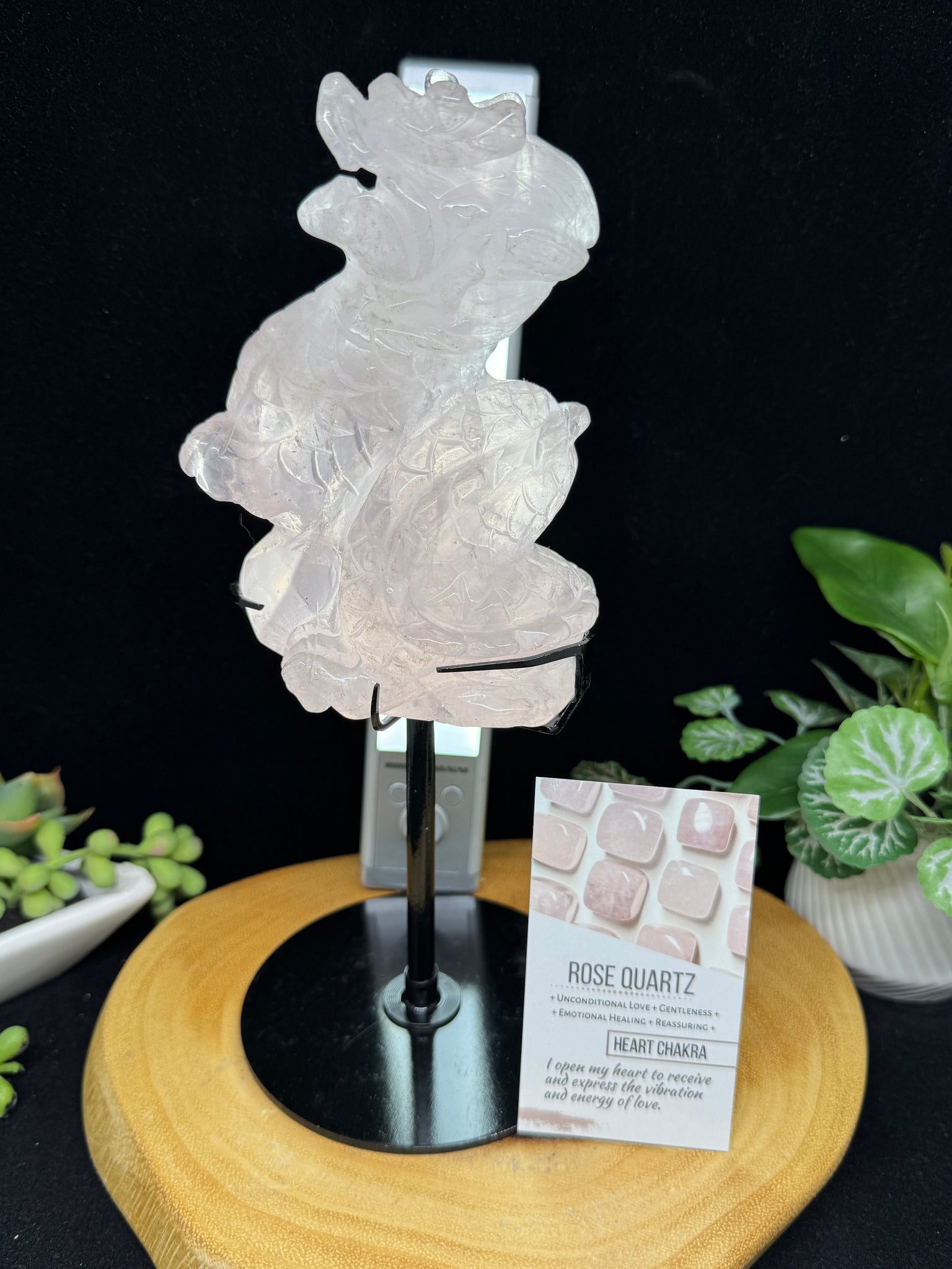 9.5" Rose Quartz Dragon Carving on Custom Stand SZ19 Love stone