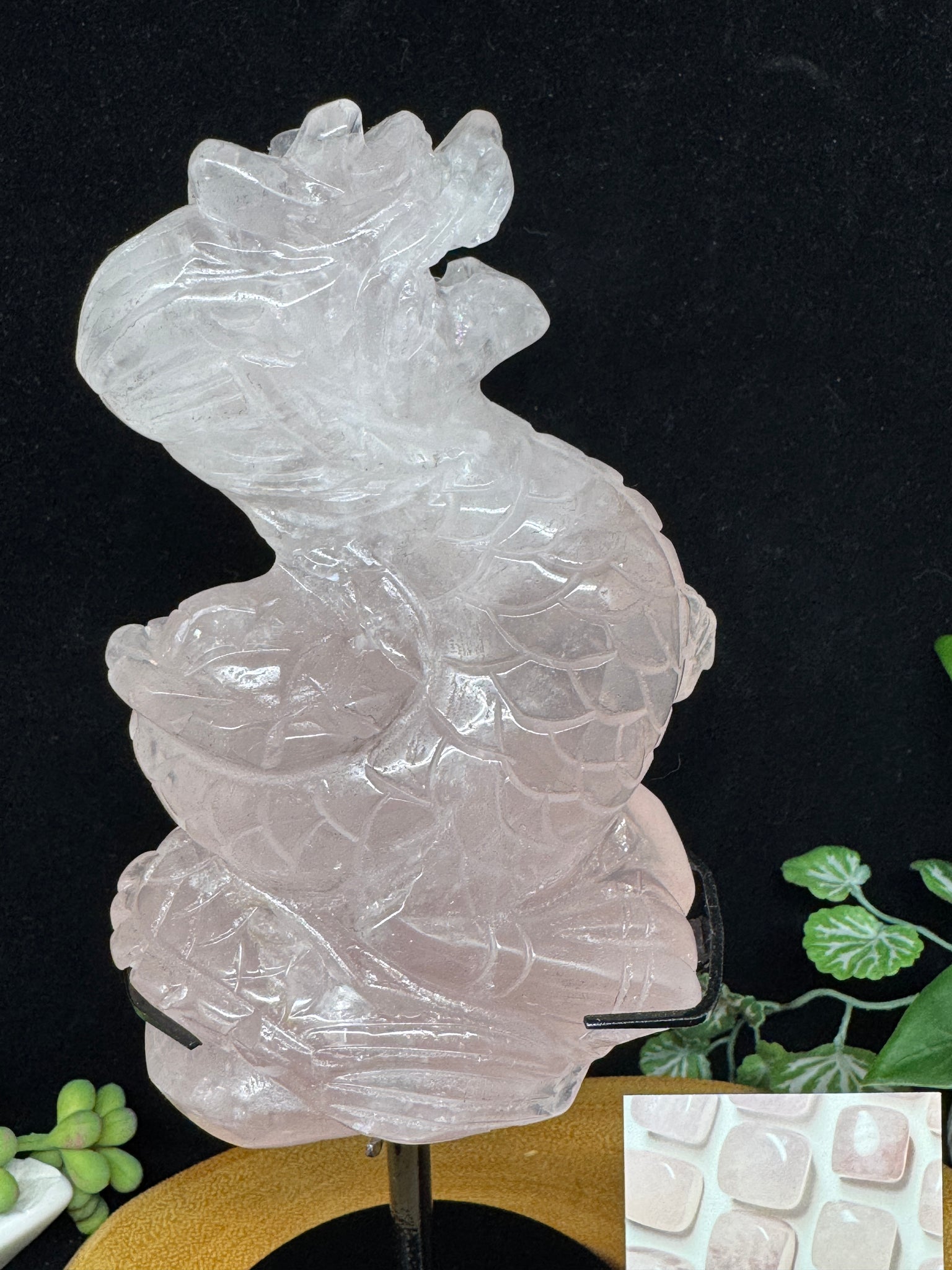 ✨ Rose Quartz Dragon Carving on Custom Stand – 9.5" ✨